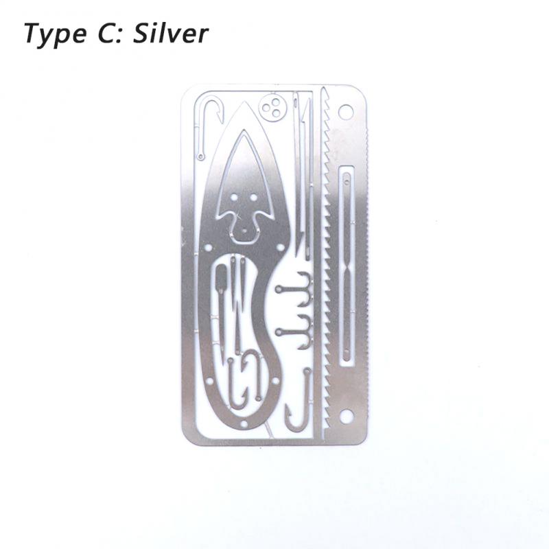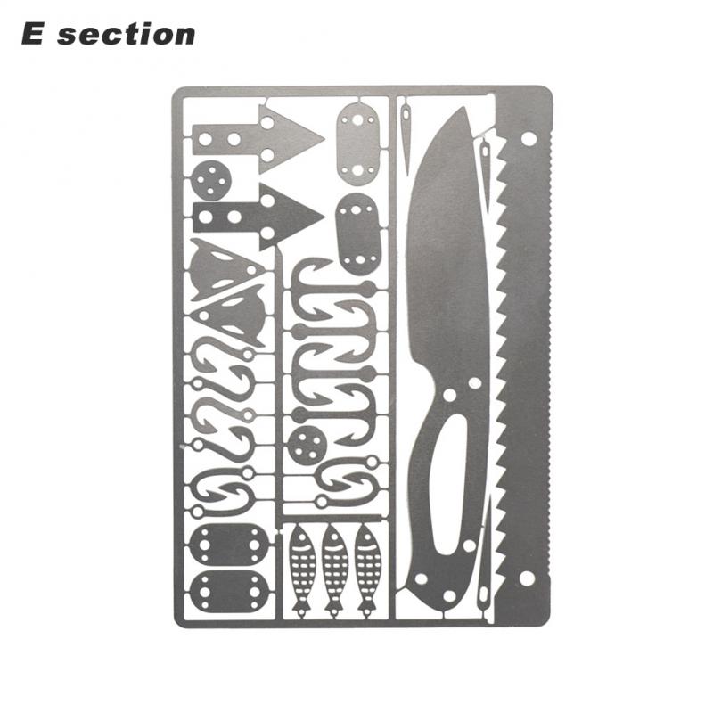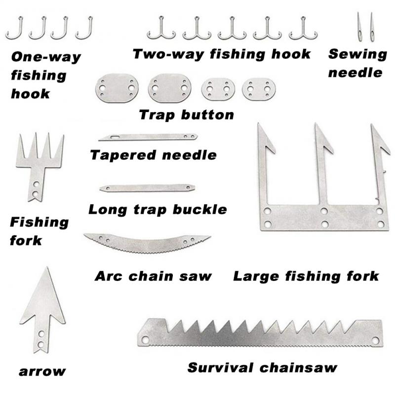 Multi-purpose Stainless Steel Tool Card Trap Button Saw Blade Fish Hook/Fork Knife Blade Outdoor Camping Emergency Tool